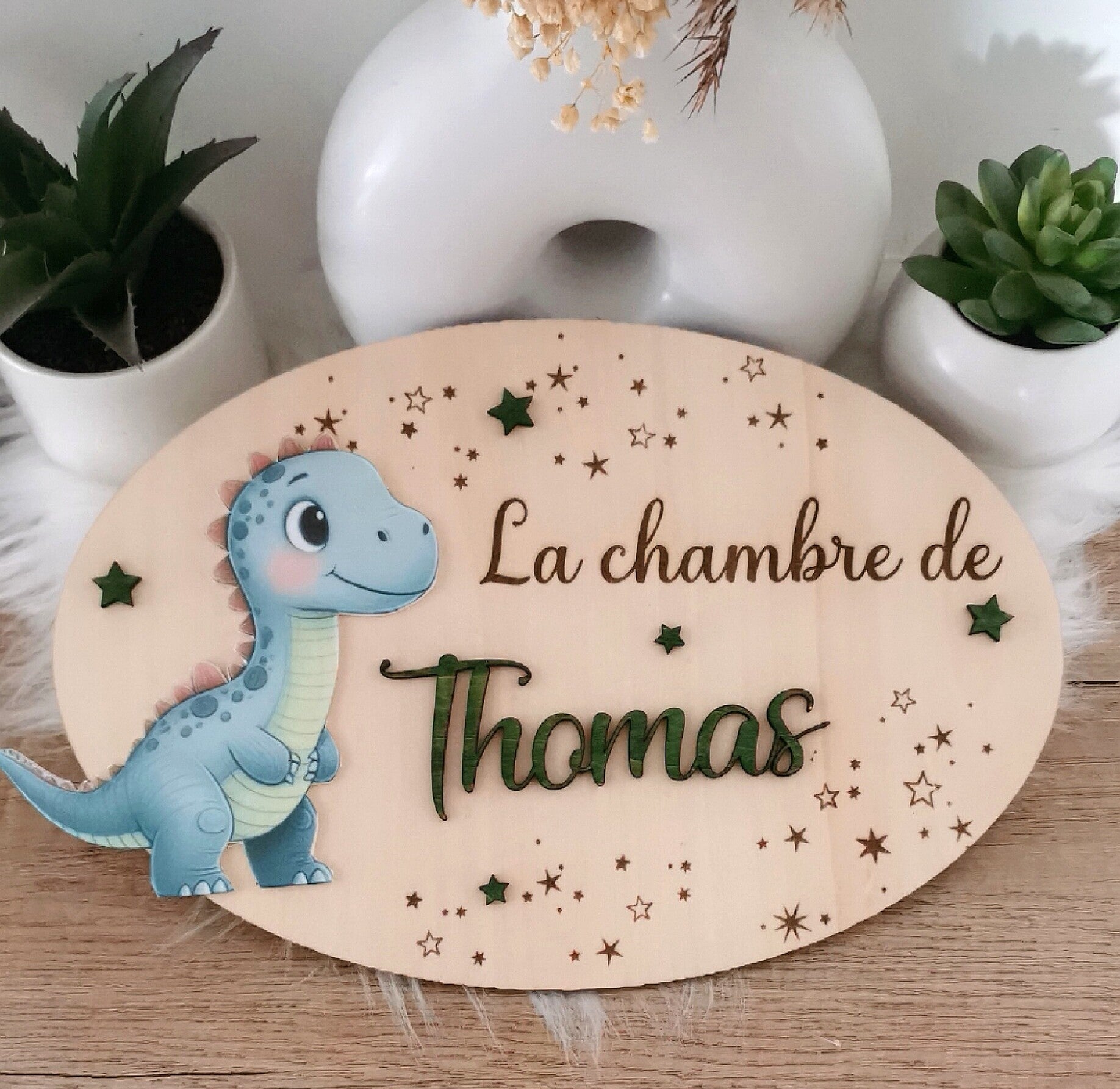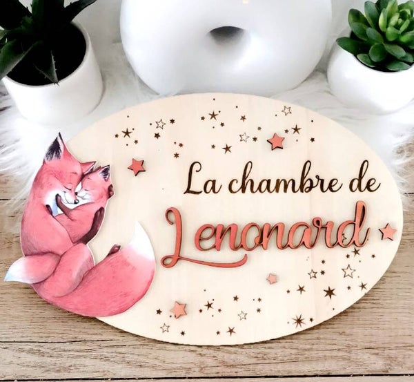 Chaque plaque est personnalisée avec le prénom de votre choix, dans le thème et les couleurs que vous aimez : renard, ourson, lionceau, dinosaure… ou tout autre univers qui fera briller les yeux de votre petit(e) !